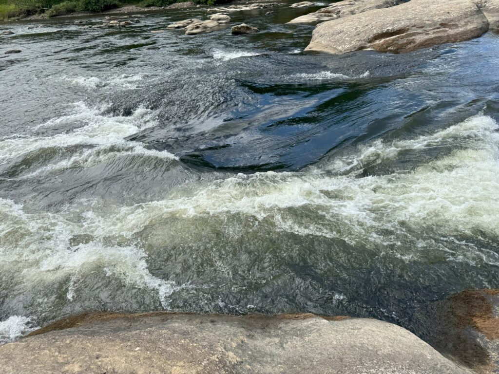 真ん中に中州があるポイント。右岸側から通過するのがおすすめです。