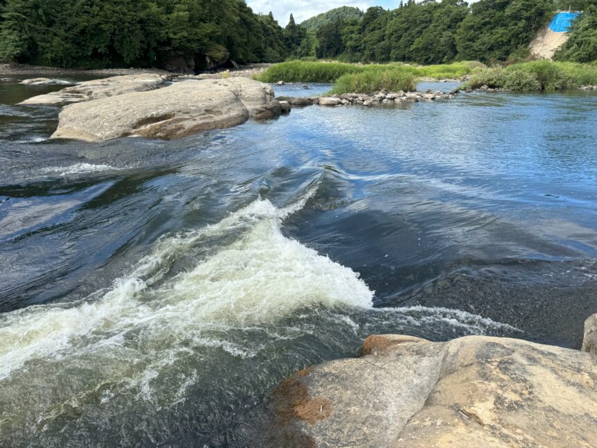 最上川は、適度な瀬が連続しており、瀬遊び大好きなカヤッカーにも大満足の川です。瀬の後には落ち着いたトロ場が広がるため、初心者でも安心して楽しめます。中でも「タンの瀬」はいつまでも遊んでいられる名スポット。